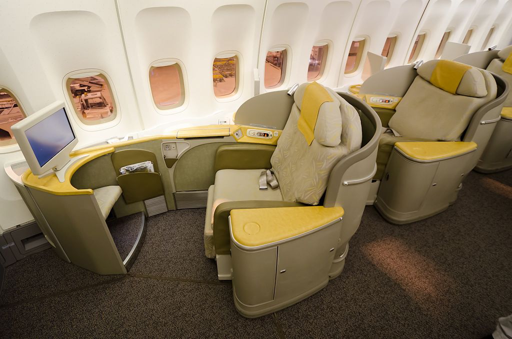 Полностью раскладывающиеся плоские сиденья оснащены раздвижной дверью, 32-дюймовыми персональными развлекательными экранами в полете, персональными лампами для чтения, розетками переменного тока на 110 В, USB-портами для зарядных устройств и ограниченным пространством для хранения вещей.