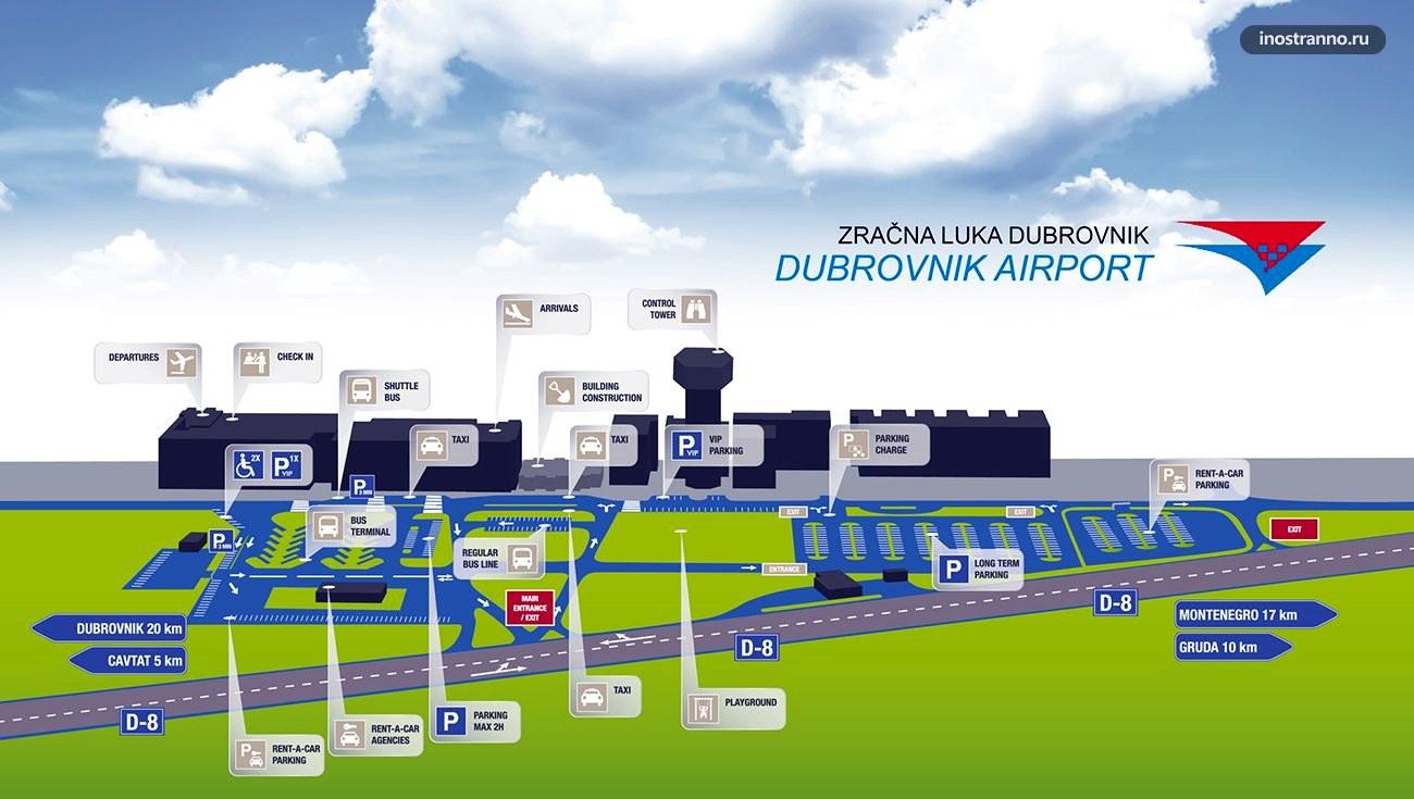 - Международное название аэропорта: Dubrovnik Airport или по-хорватски Zračna luka Dubrovnik