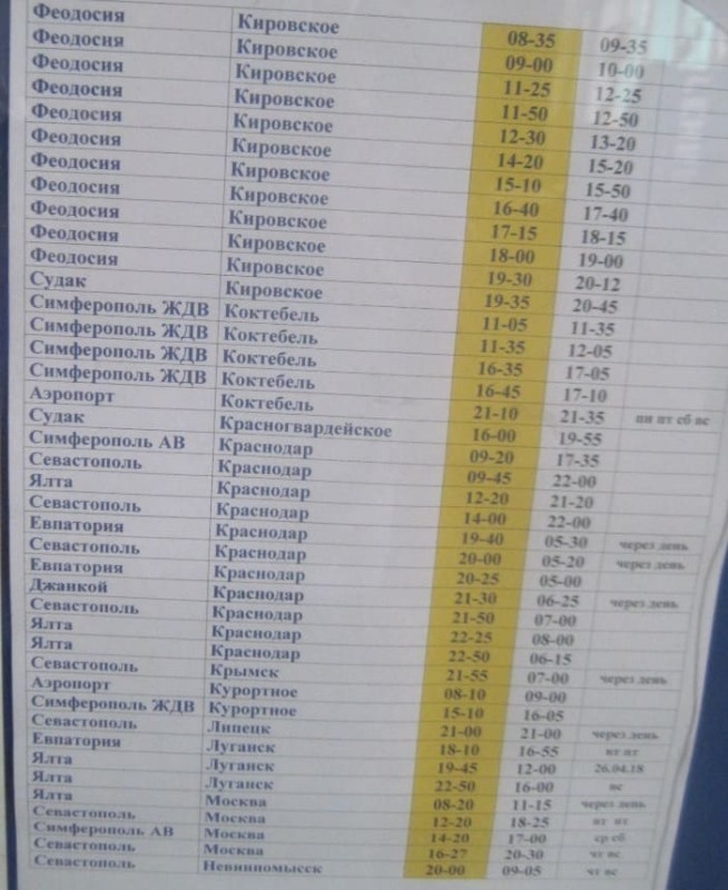 | Керчь | Ялта автостанция | 21-15 | 23-10 |