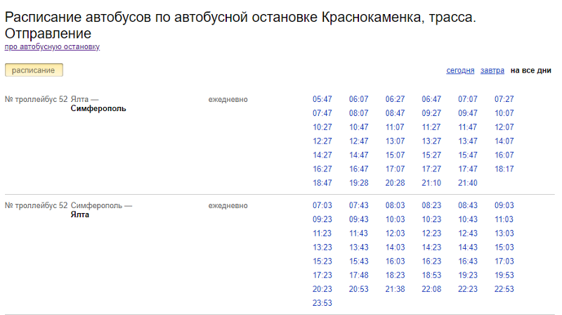 | ж/д вокзал | Ялта автостанция | 9-00 | 10-58 |