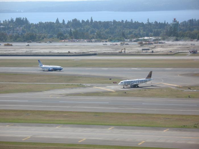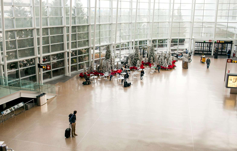 Small airport with 8 terminals and flights depart close to each other time-wise.