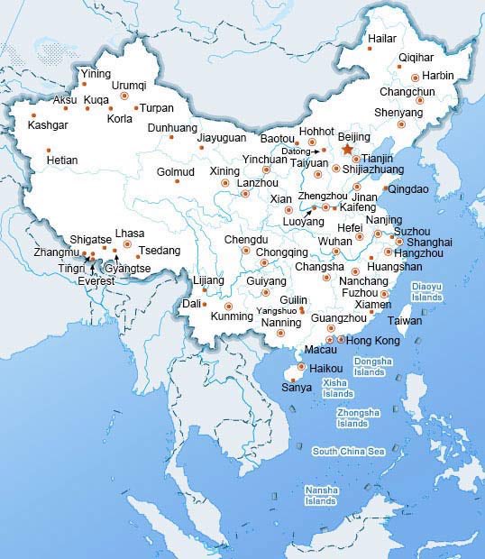 Кроме пекинского аэропорта, в КНР еще много международных аэропортов, расположенных в больших городах. Если взглянуть на карту Китайской Народной Республики, то можно заметить что аэропорты Китая на карте расположены в основном в южной его части. Совсем немного в центральной части. Это обусловлено тем, что север КНР – это горы и пустыня, где проживает совсем небольшое количество населения. В основном люди живут на побережье или вдоль рек.