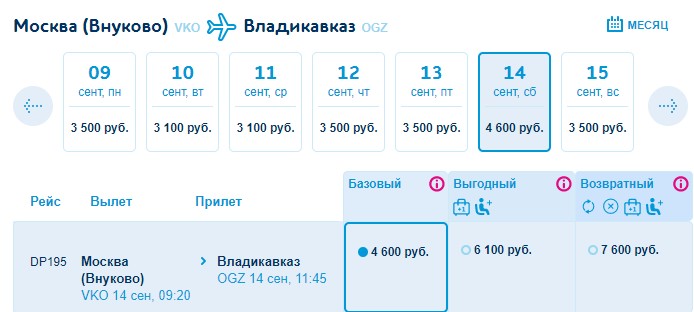 Расписание самолетов Домодедово — Беслан (Владикавказ)