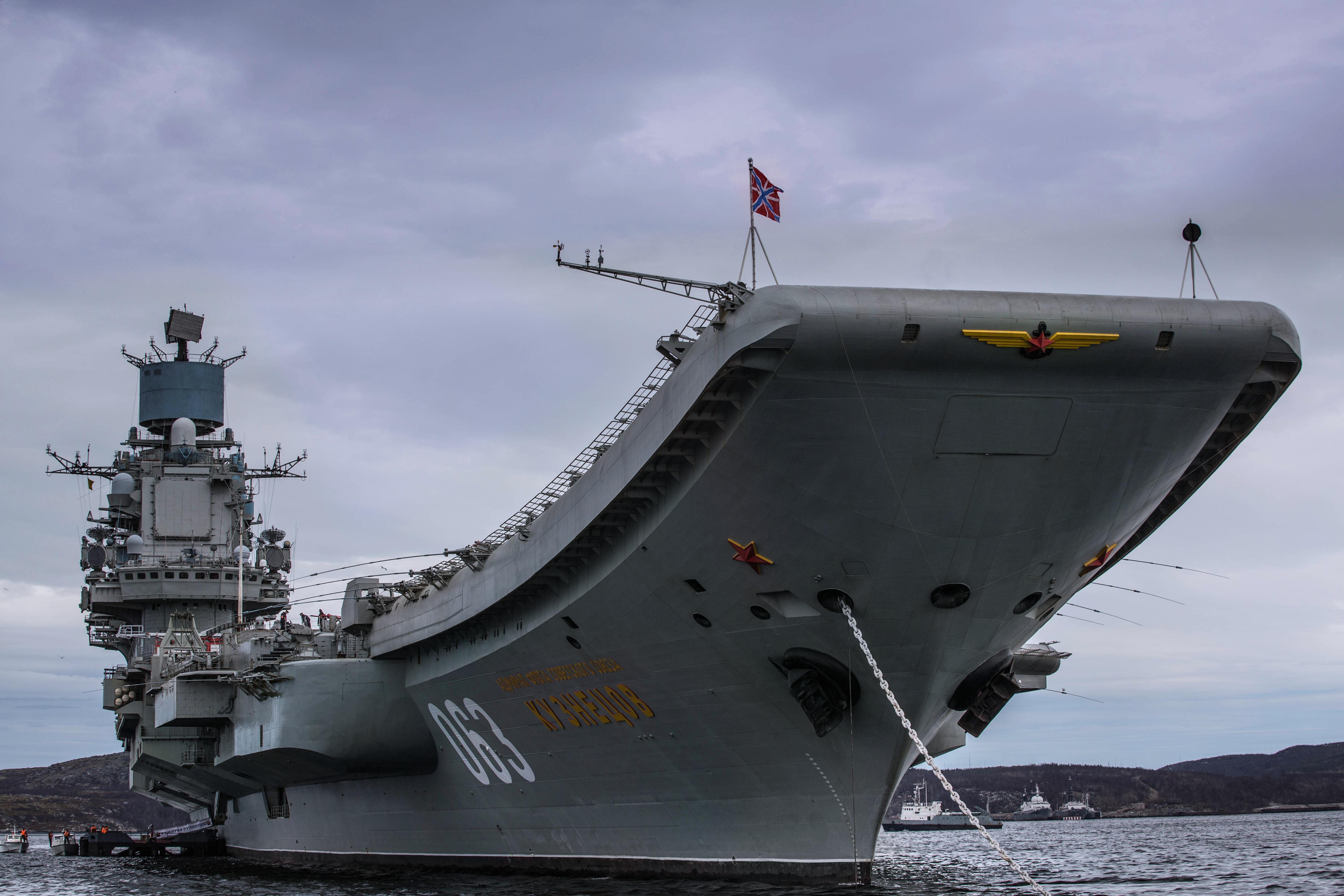 Единственный российский авианосец «Адмирал Кузнецов» (по российской классификации тяжелый авианесущий крейсер, водоизмещение около 60 тысяч тонн, длина 306 м, авиакрыло в составе 50 самолетов и вертолетов), спущенный на воду в 1985 году, входит в состав Северного флота.
