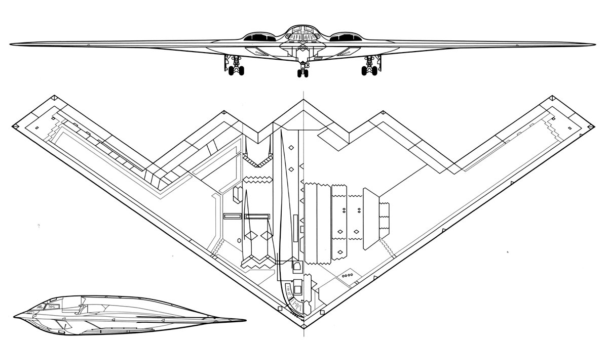 Со временем концепция самолета B превратилась в полноценный, дальнобойный, тяжелый самолет. бомбардировщик. У Lockheed были предложения, одно из которых, очевидно, касалось машины. как увеличенный F-117 под кодовым названием SENIOR PEG, но Пентагон также попросил Нортропу предстоит провести расследование.Должностные лица Northrop были обеспокоены работой над тяжелый бомбардировщик, с момента последней попытки компании в этом направлении, XB-35 / YB-49, летающий на крыльях три десятилетия назад, в финансовом отношении приблизился к разрушая компанию. Однако они согласились и ответили двумя предложения, одно из которых, придуманное дизайнером Хэлом Маркаряном, приняло Вдохновение от YB-49. Кстати, есть история, возможно, правдивая, что YB-49 продемонстрировал удивительную способность исчезать с радаров в определенные углы обзора.
