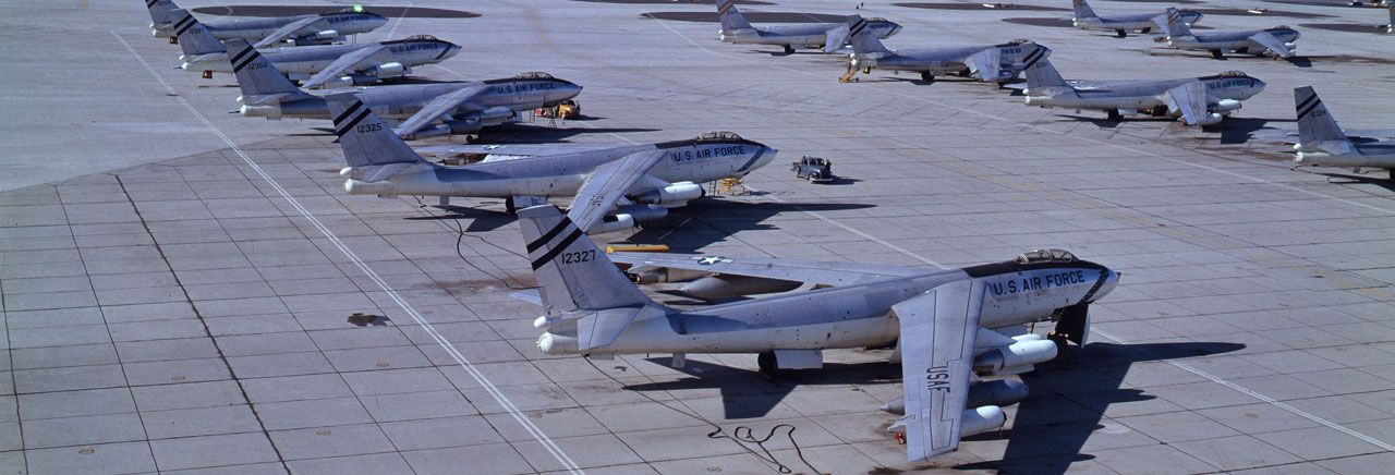 К 1956 году развертывание B-47 достигло своего пика, когда в SAC было передано более 1300 единиц. К тому же около 250 РБ-47 на тот момент находились в САК. Впоследствии в 1960-е годы производство B-47 было прекращено. В 1960 году еще насчитывалось почти 1100 B-47. В 1964 году это число упало примерно до 400, а в 1966 году последний B-47 был выведен из эксплуатации, хотя несколько RB-47 оставались до 1967 года. Поэтапный отказ от среднего бомбардировщика B-47 совпал с быстрым наращиванием межконтинентальных баллистических ракет и БРПЛ. развертывание США.