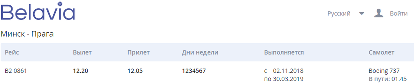 СР: вылет 3.30, прилет 8.40. ПТ: вылет 23.55, прилет 05.05