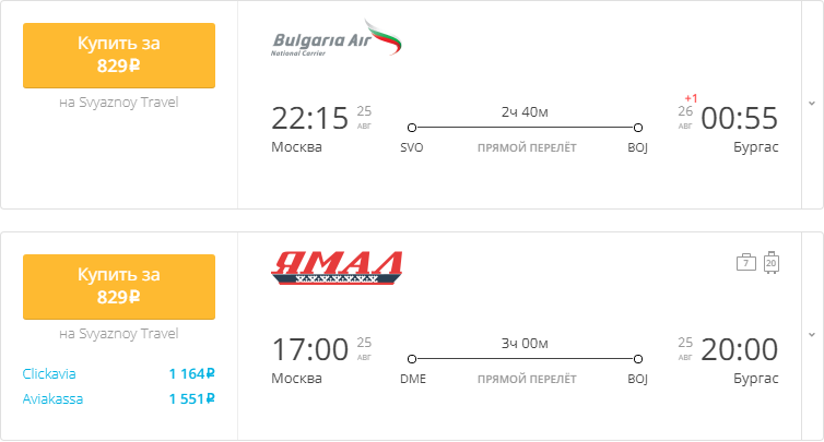 Для поездки выбирайте варианты среди следующих авиакомпаний: