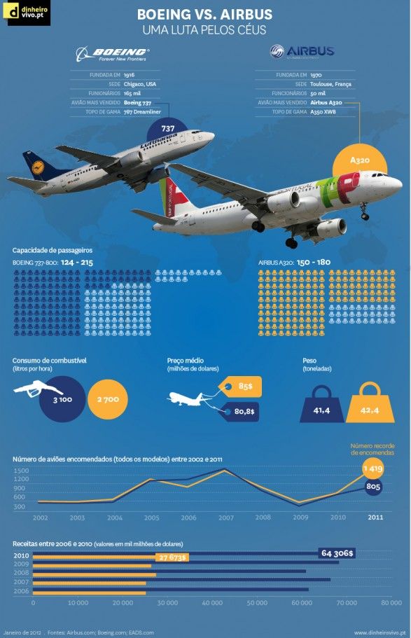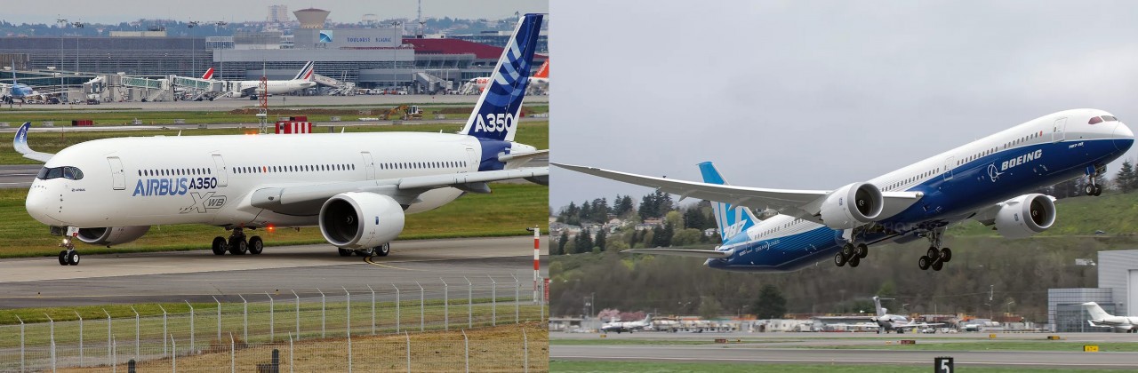 Две эти корпорации являются крупнейшими производителями гражданских самолётов в мире и мощнейшими конкурентами. У них даже существуют модели, которые практически дублируют друг друга. Например, Boeing 737 и Airbus A320 — это самолёты средней вместимости для авиалиний средней протяжённости. Также между собой сравнивают Boeing 747 и A380 — самолёты с большой вместимостью, предназначенные для средней и большой протяжённости. Boeing 767 с A330 и другие.