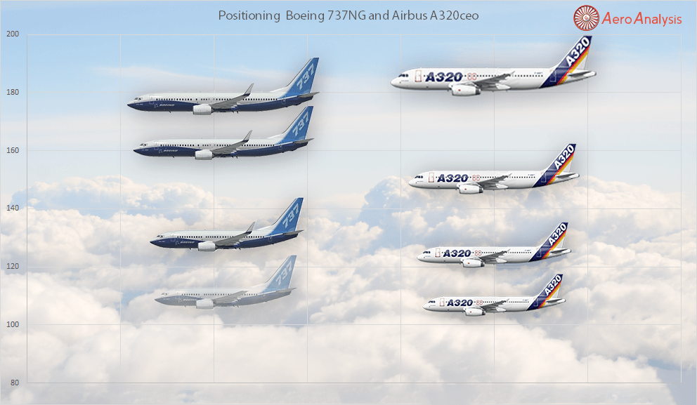 В ходе своего соперничества обе компании выпустили разные семейства самолетов и со временем представили разные варианты с небольшими изменениями, чтобы превзойти друг друга.