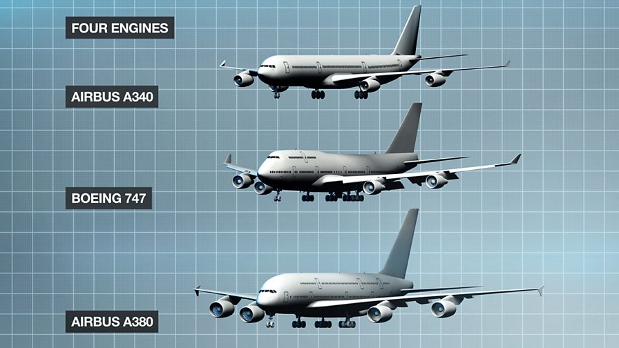 Самое простое сравнение моделей двух компаний — это Boeing 747 и Airbus A380. Оба являются двухэтажными, двухфюзеляжными, четырехмоторными самолетами, предназначенными для дальнемагистральных маршрутов при снижении стоимости одного места.