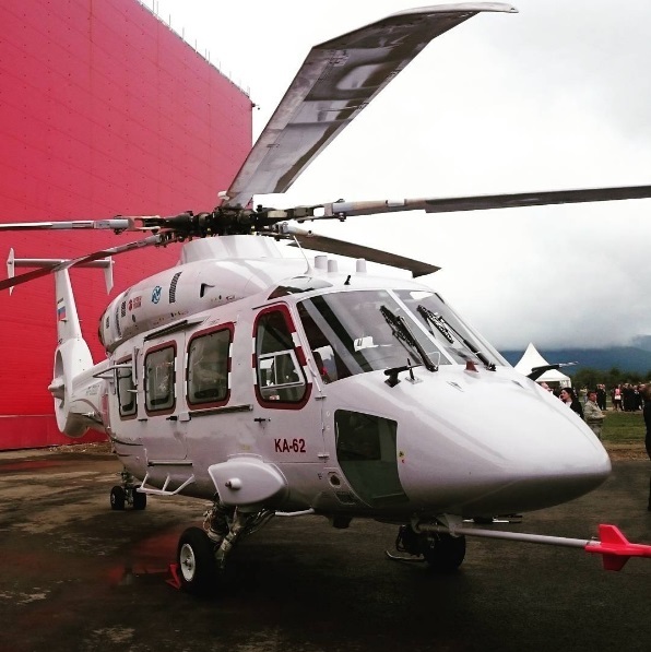 Вертолет массой до 6,5 тонн может перевозить 15 пассажиров на расстояния до 600 км, а также грузы внутри кабины и на внешней подвеске. Особенностью Ка-62 является применение в его конструкции полимерных композиционных материалов, которые составляют до 60% по массе. Благодаря этому увеличивается скорость, маневренность и грузоподъёмность вертолета, а также снижается расход топлива. Еще одна отличительная черта – одновинтовая схема с многолопастным рулевым винтом в кольцевом канале вертикального хвостового оперения, который применен на вертолетах впервые в России.
