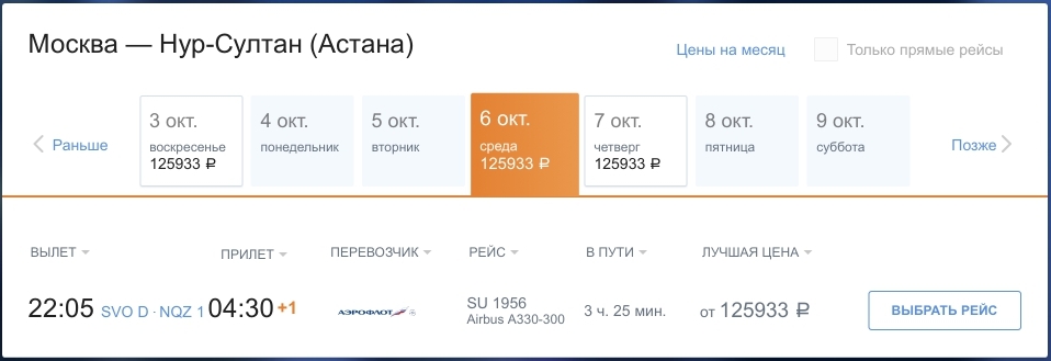 - Выберите даты, которые вам нравятся, для которых доступны дешевые тарифы