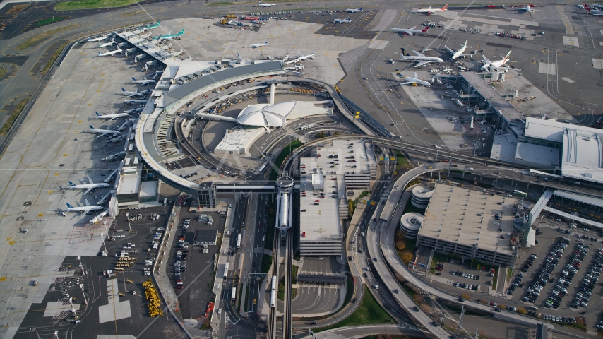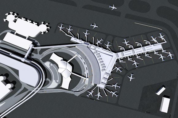 Вид сверху. Аэропорт имеет 9 терминалов между которыми курсирует поезд на воздушной подушке. Терминалы № 8 и 9 реконструируются и объединяются, так что скоро их будет 8…