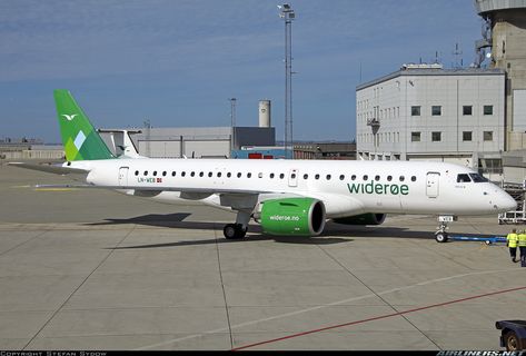 Eine neue Embraer E190-E2 von Norwegian Wideroe’s Flyveselskap auf dem Vorfeld des Vantaa Flughafens в Хельсинки, 17 февраля 2019 г.