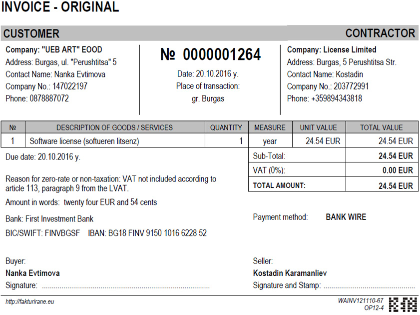 Получить счет для оплаты банковским переводом