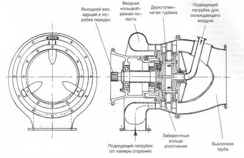Благодаря такому подходу достаточно быстро удалось определиться с конкретным обликом перспективного двигателя. Таким образом, в планы входило создание трехвального ГТД с двухкаскадным турбокомпрессором, кольцевой камерой сгорания и охлаждаемым сопловым аппаратом. Силовая турбина – одноступенчатая с регулируемым сопловым аппаратом перед ней. В конструкцию двигателя ГТД-1000Т сразу ввели встроенный понижающий редуктор, который мог преобразовывать вращение силовой турбины со скоростью порядка 25-26 тыс. оборотов в минуту в 3-3,2 тыс. Выходной вал редуктора разместили таким образом, что он мог передавать крутящий момент на бортовые коробки передач «Объекта 432» без лишних деталей трансмиссии.