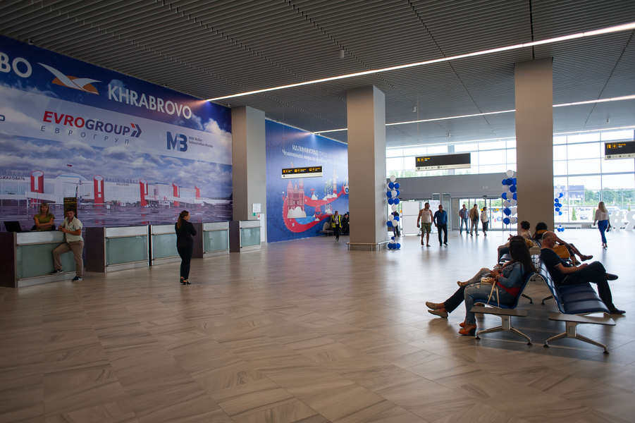 22 июля в аэропорту Храброво Калининграда начал работу новый терминал. Объект располагается на площади 27 тыс. кв. м. Он будет обслуживать внутренние рейсы на прилет.