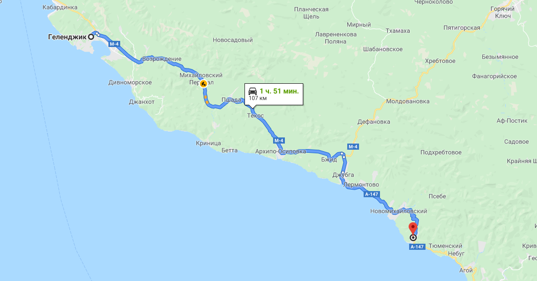 Расстояние между Туапсе и аэропортом Сочи (AER) составляет 101 км. Протяженность дороги 143,4 км.