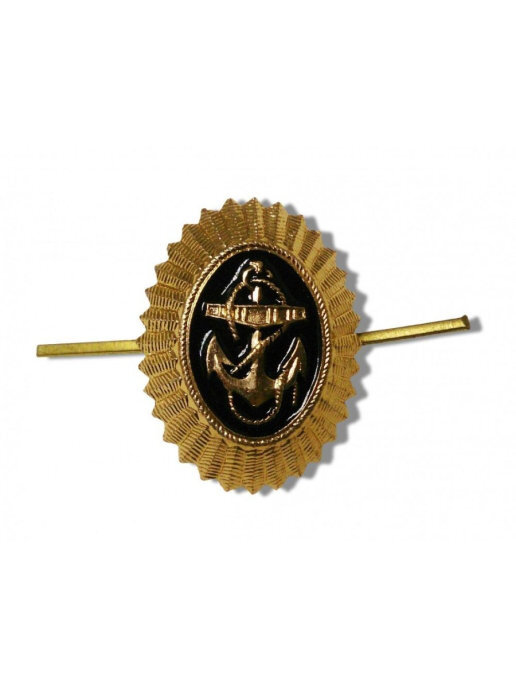 Для старшего, среднего, младшего начальствующего и рядового состава на кокарде вокруг эллипса располагается венок из лавровых листьев — по 3 листа справа и слева и 2 у основания. Для всех видов мужских головных уборов кокарда выполняется из металла золотистого цвета.