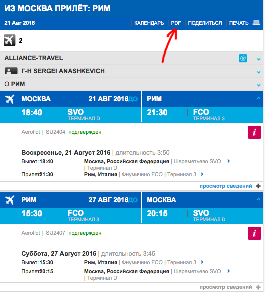Заходим на сервисы проверки бронирований, вводим фамилию латиницей и код PNR. Если бронь подтверждена, — то можем ее распечатать и смело подавать в консульство.