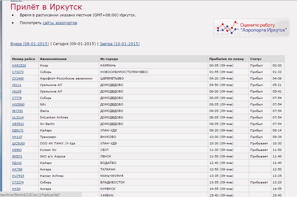 Обратные рейсы: