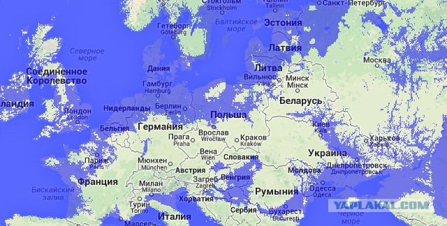 Спутниковая карта Европы на русском языке онлайн с городами и курортами, дорогами, улицами и домами: