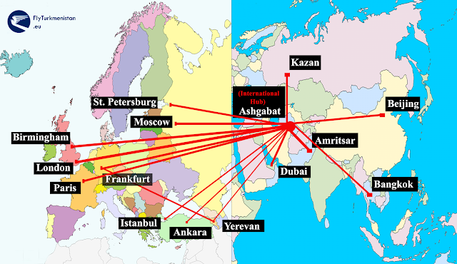 Здесь заходят на посадку и отправляются в рейс государственные и иностранные воздушные суда. Их рейсы объединяют разнообразные регионы и страны. Еще в авиаузле Ашхабад (Ashgabat) IATA: ASB ICAO: UTAA принимаются личные джеты.