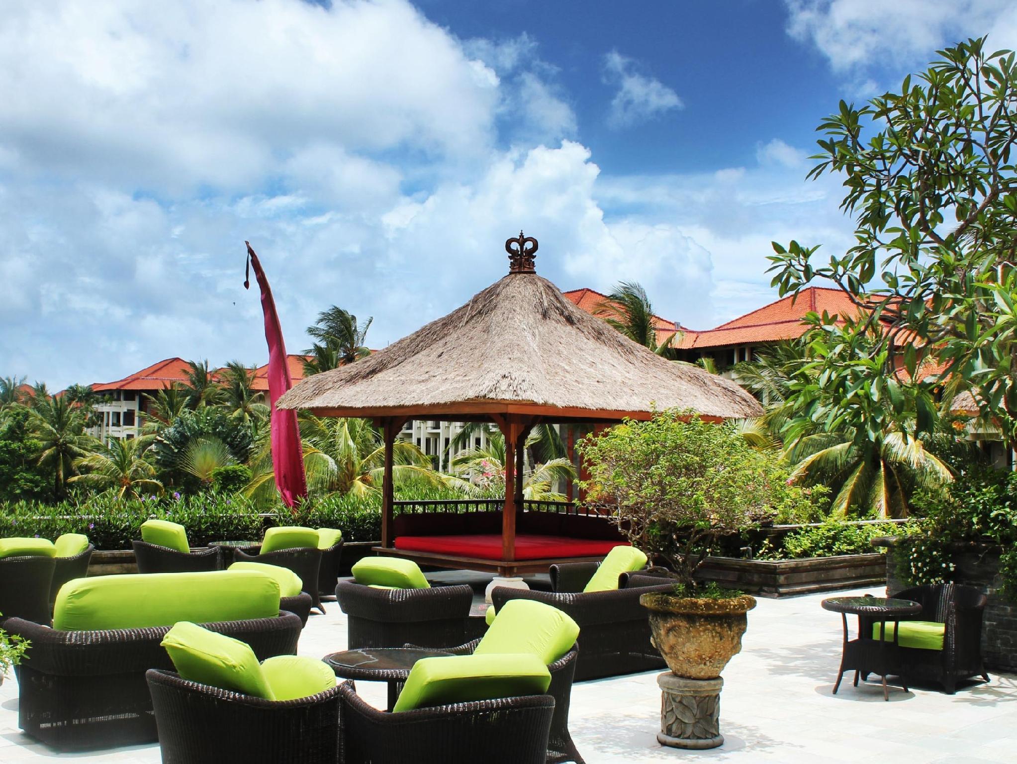Этот курорт находится на самом юге Бали и очень популярен у тех, кто любит спокойное времяпрепровождение. Красивый коралловый риф прикрывает лагуну от ветра и волн, поэтому в туристический сезон здесь так много отдыхающих с детьми. Интересная деталь: на курорт доступ местным жителям воспрещен. Только те из них, кто работает в качестве обслуживающего персонала, могут попасть на его территорию. Прямо у береговой линии расположены известные бренды таких отелей, как: