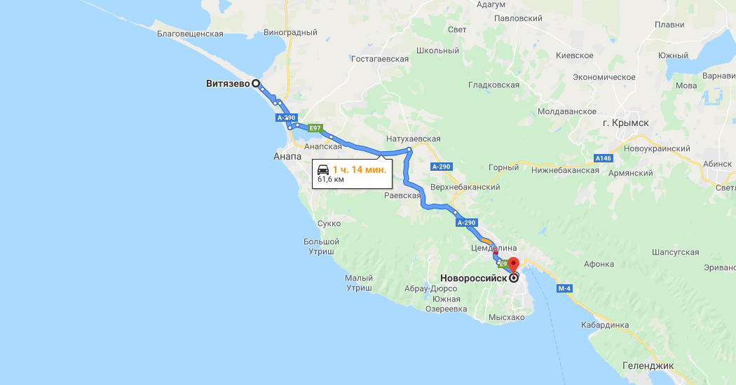 Возможно, удобнее добраться сначала до Анапы, так как таких предложений будет на порядок больше, а уже потом пересесть на местную маршрутку или автобус до Новороссийска (в пути около 1 часа, стоимость проезда 85 RUB).