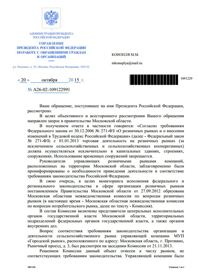 Ответ на обращение направляется в форме электронного документа по адресу электронной почты, указанному в обращении, в форме электронного документа, и в письменной форме по почтовому адресу, указанному в обращении, поступившем в письменной форме.