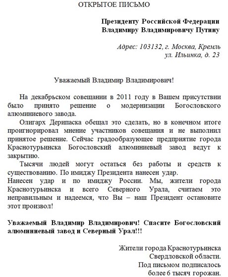 Заявление представляет собой документ, в котором перечислены нарушения или недочеты в работе чиновников как регионального уровня, так и государственного. Помимо этого, в заявлении содержится просьба о помощи в решении проблемы с которой возникли сложности.