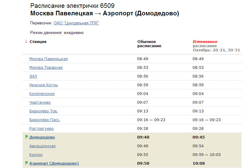 - от Павелецкого вокзала — до аэропорта Домодедово;