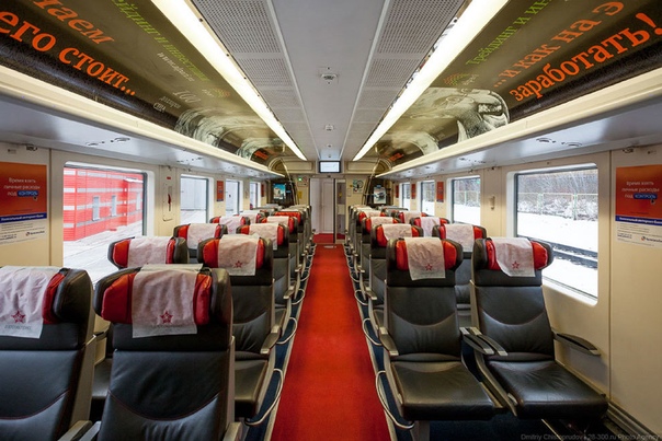 - Вагон бизнес-класса — в вагоне 24-26 мест, безалкогольные напитки, газеты, багажные полки и вешалки для одежды предоставляются бесплатно. Билет в вагоны бизнес-класса гарантирует место с номером, который выдается на конкретную дату и время отправления.