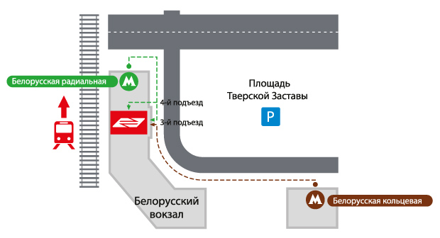 В аэропорт Шереметьево из МосквыЗдание железнодорожного терминала Аэроэкспресса расположено на Белорусском вокзале, возле станции метро «Белорусская».