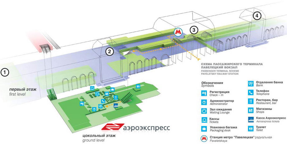 » схема расположения терминала Аэроэкспресс на Павелецком вокзале