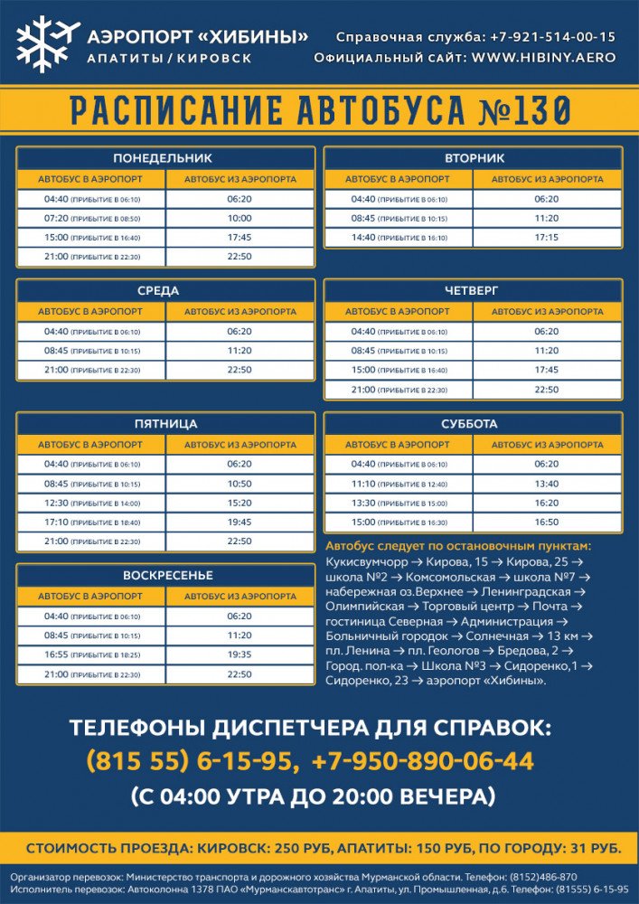 Рейсовый автобус №130 Кировск-Апатиты-Аэропорт-Апатиты-Кировск
