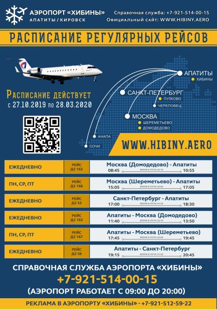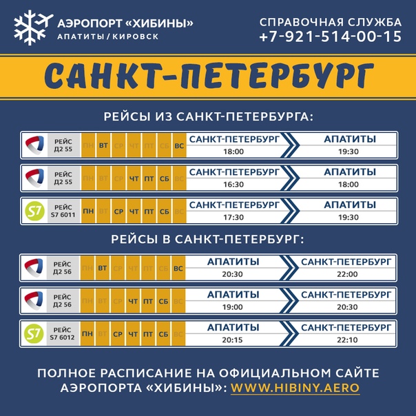 • Справочная служба а/п «Хибины»: +7-921-514-00-15