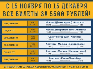 Время вылета рейса из аэропорта Хибины указано местное. Информация о времени вылета самолета может отображаться с небольшой задержкой.