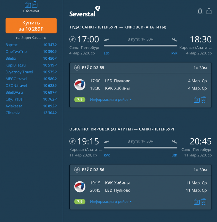 Дни полетов: ПН, ЧТ (с 18 февраля по 25 марта) |