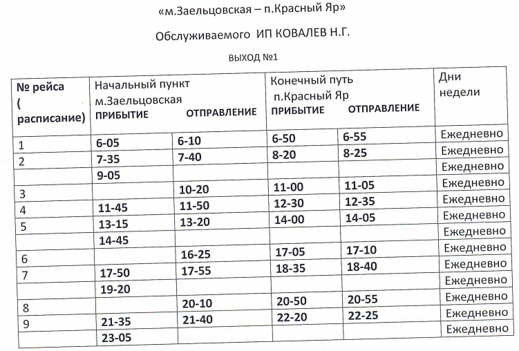 Расписание маршрута № 26К |