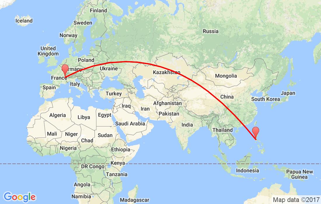 Расстояние по большому кругу или кратчайший маршрут сингапур — нью-йорк (EWR) составляет 15345 км (9,534 миль, 8286 морских миль). Маршрут пролегает через северный полюс. Летая на восток по маршруту Nopac, SQ22 в своих первых трех полетах в среднем прошел 16 587 км (10 306 миль, 8956 морских миль).