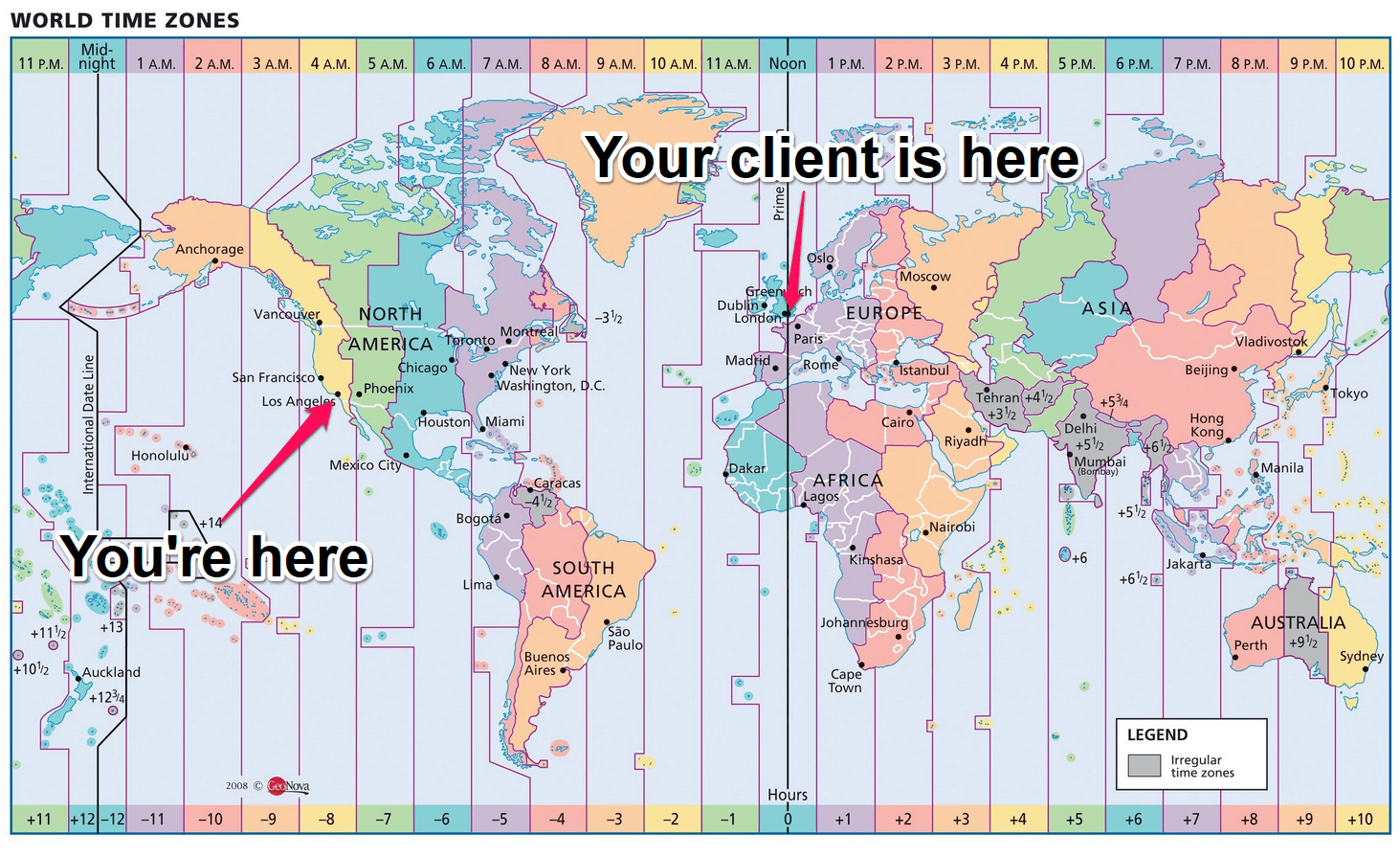 Если вы живете в Улан-Удэ, Россия, и хотите позвонить другу в Москву, Россия, попробуйте позвонить ему с 12:00 до 4:00 по вашему времени. Это будет с 7:00 до 23:00 по их времени, так как в Москве на 5 часов меньше, чем в Улан-Удэ.