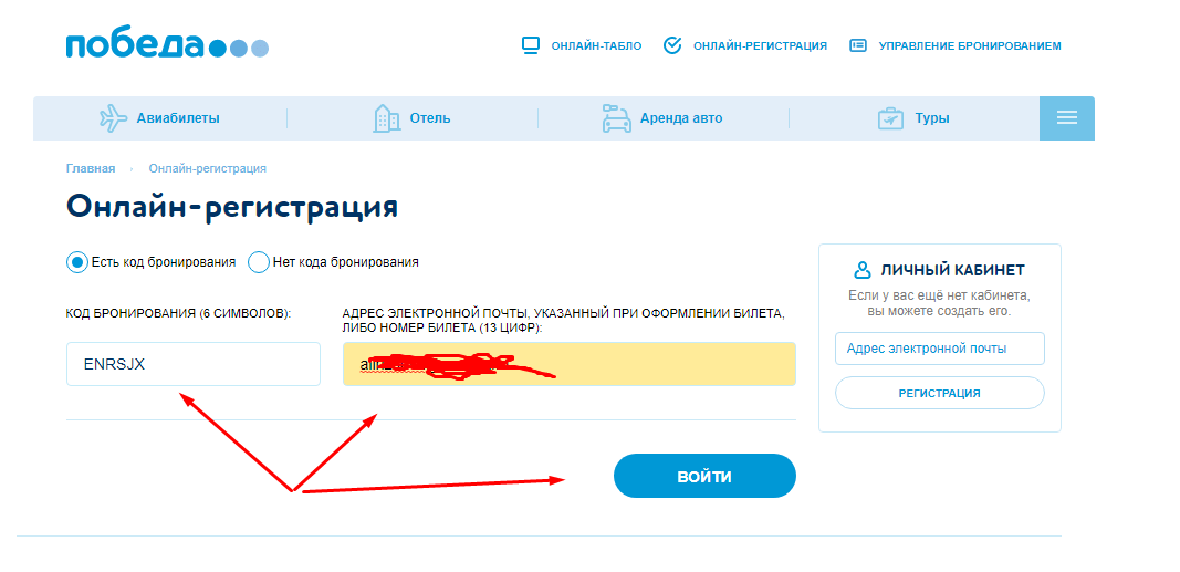 Электронные посадочные талоны будут отправлены на адрес электронной почты
