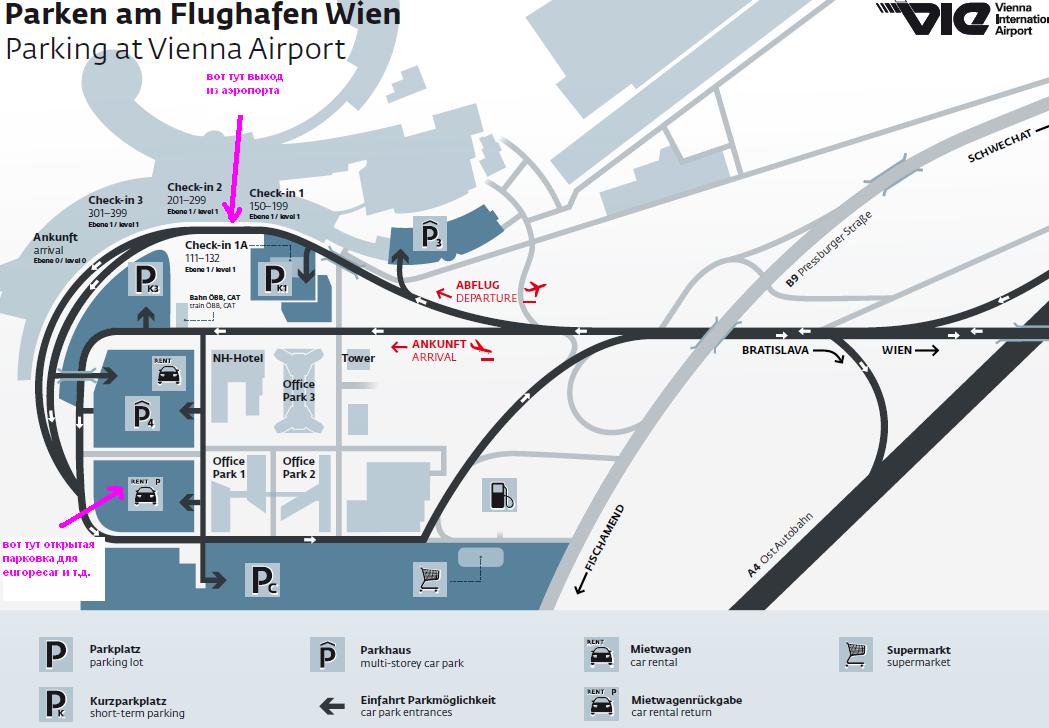 Если ваш визит в Австрию не ограничится исключительно Веной, то смело берите в аренду авто прямо в аэропорту. Car Rental Center находится на парковке P4.