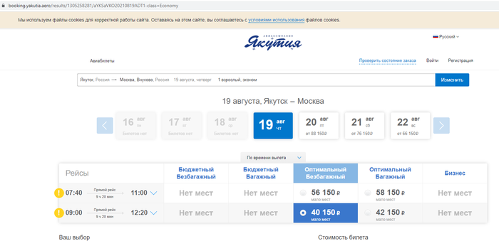 Якутск — Владивосток — Якутск — 7 400 руб. 8000 руб *