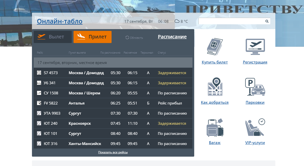 | 06:20 | Красноярск — Москва | S7 2544, S7 Airlines Boeing 737-800 ежедневно с 27. 10 по 25.03, кроме 01.01 |
