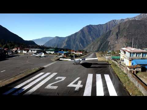 Аэропорт Тенцинг-Хиллари, также известный как аэропорт Лукла, в Непале является основным аэропортом для всех, кто посещает Эверест. Взлетно-посадочная полоса со всех сторон окружена крутым гималайским ландшафтом, с горным уступом с одной стороны и крутым обрывом в долину внизу с другой стороны. Взлетно-посадочная полоса аэропорта очень короткая, всего 527 м (1729 футов), хотя она также поднимается в гору с уклоном почти 12%, что помогает самолетам вовремя замедляться.