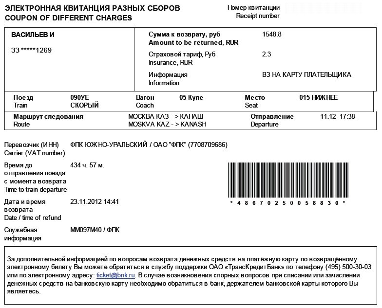 - Плата за обслуживание при онлайн-покупке не возвращается.