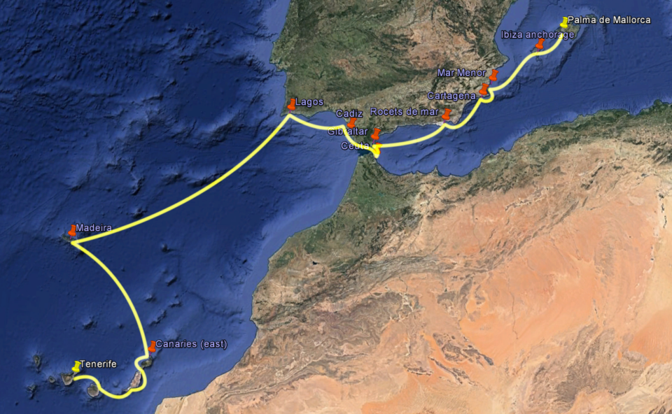 | Барселона | Гран-Канария — Тенерифе — Фуэртевентура — Лансароте — Пальма | 3 ч 15 мин |